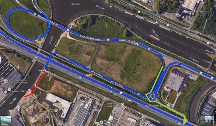 Soms kunnen vrachtwagens kort aanschuiven aan de kade, met terugslag tot op de Jozef Schellstraat. Daarom wordt aangeraden om het zuiden van Eiland Zwijnaarde tijdelijk te bereiken via de Marthe Versichelenstraat. (zie groene pijl op de afbeelding).