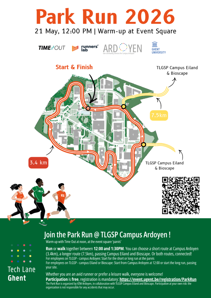 Een gezamenlijk hardloop- of wandelevenement voor medewerkers van Campus Ardoyen, Campus Eiland en Bioscape. Deelnemers van alle niveaus zijn welkom.