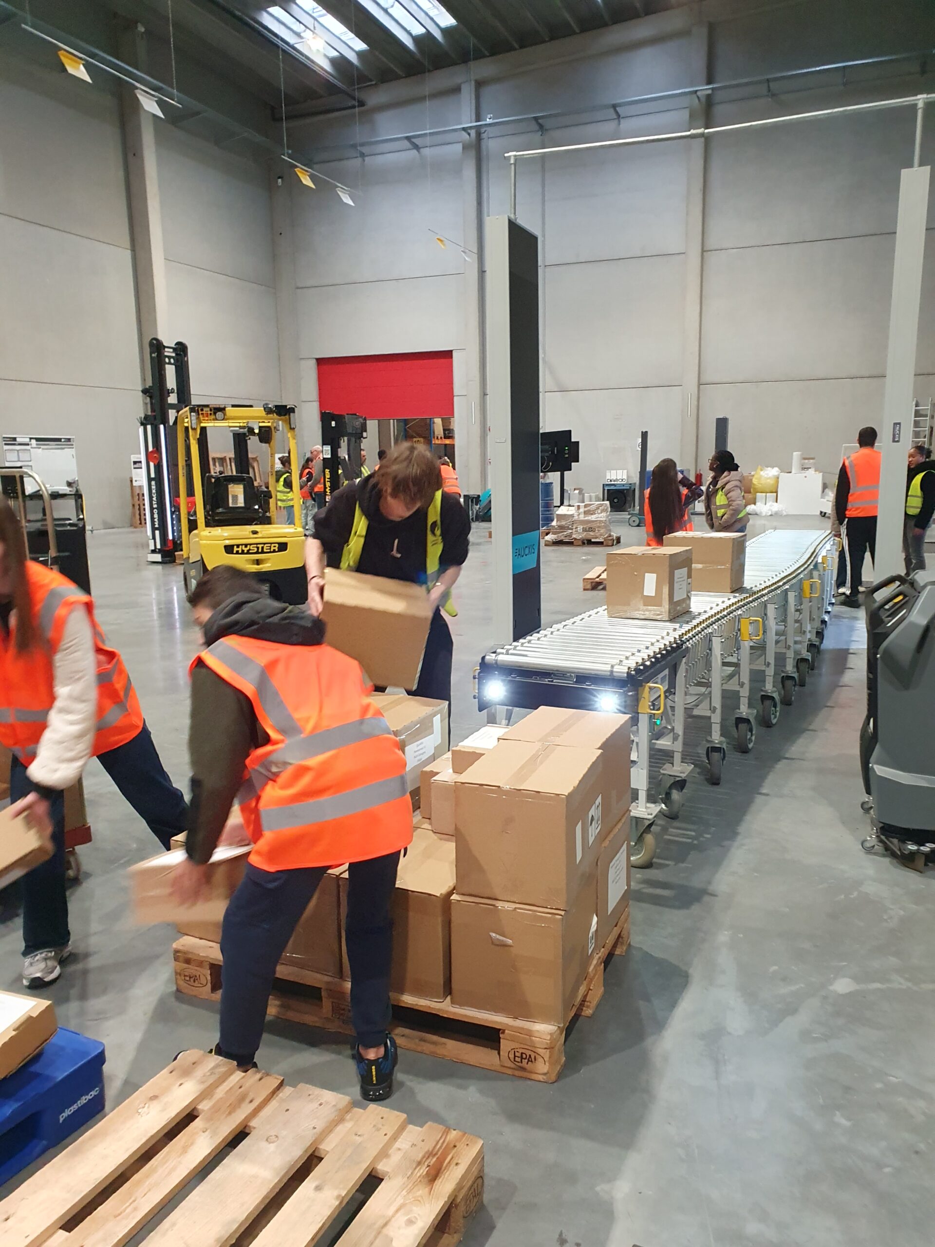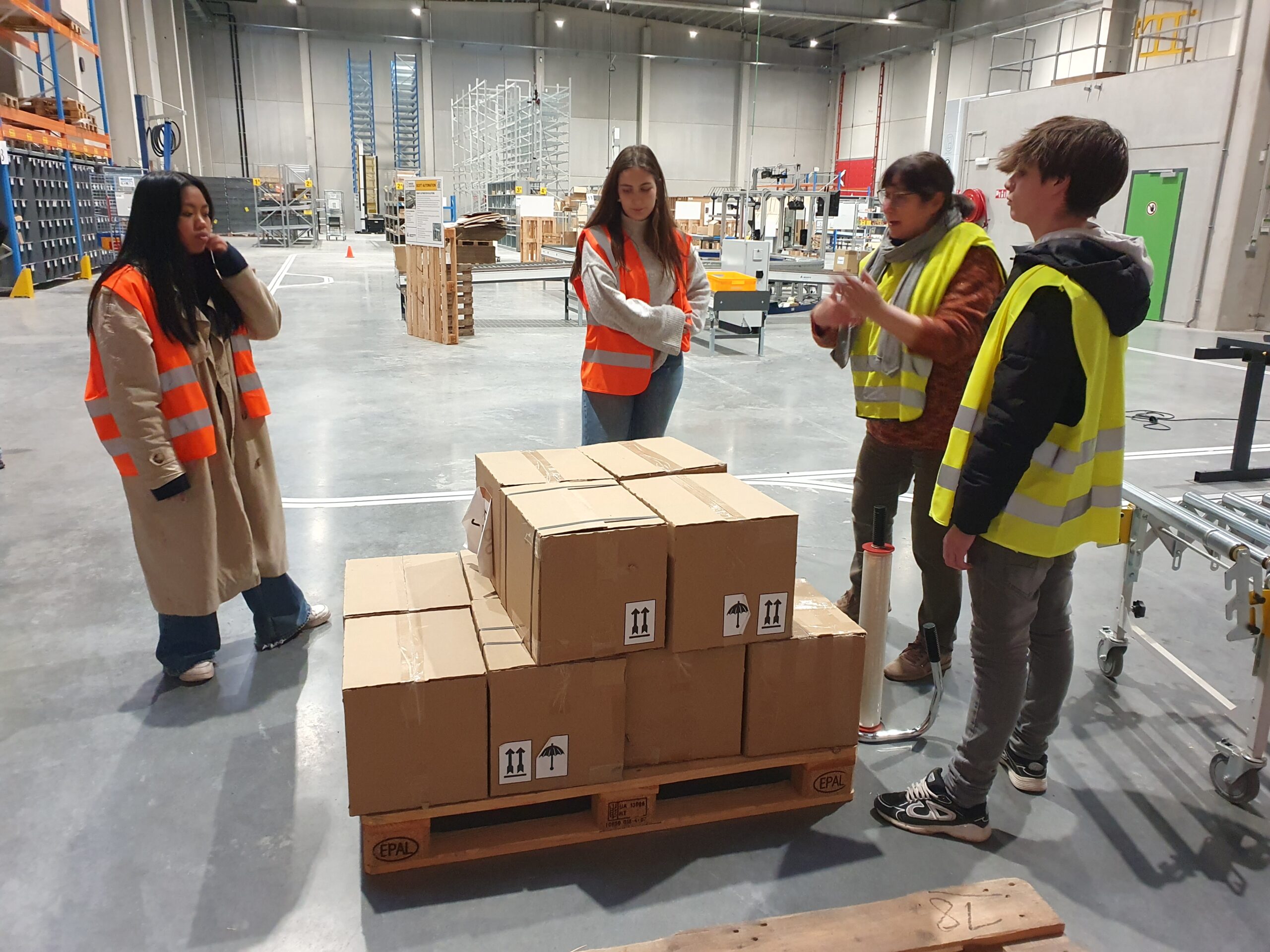 Na een korte introductie over de werking van een magazijn, werden de leerlingen opgesplitst in vier groepen met elk een concrete opdracht: